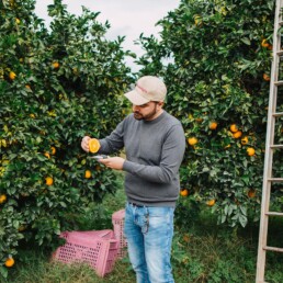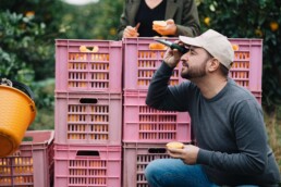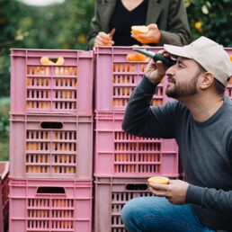 Da ottobre in poi, i nostri agronomi hanno un compito importantissimo: camminare tra gli aranci. È andando negli aranceti più vicini alla maturazione che si capisce se è arrivato il momento giusto per la raccolta, analizzando le arance per stabilire se sono pronte a diventare Elorina. Il primo metodo di valutazione si mette in atto ancora prima delle valutazioni tecniche ed è antico come il mondo: si chiama assaggio, ed è il preferito di tutti!